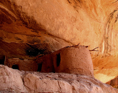Snake House Ruin ( also known as River House Ruin) is located near the mouth of Butler Wash where it flows into the San Juan River. If you don't want to hike down Butler Wash to the river, this ruin can also be accessed by either a 4x4 or a high clearance vehicle from the dirt road that runs along the west side of Comb Ridge down to the river. This road is is part of the old historic "Hole in the Rock" trail that the Mormons used to to settle the town of Bluff in the year 1880. This ruin has a very large "snake" painted above the ruin in the alcove.